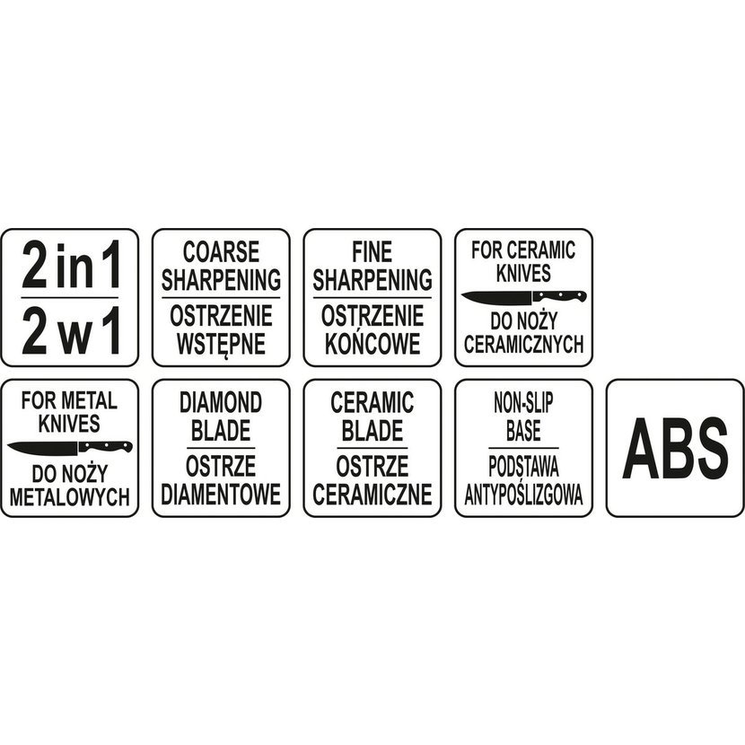 Brousek je opatřen 2 čepelkami. Diamantová je určená pro předostření ocelových a keramických nožů. Keramická čepel je určená pro doostření nožů.