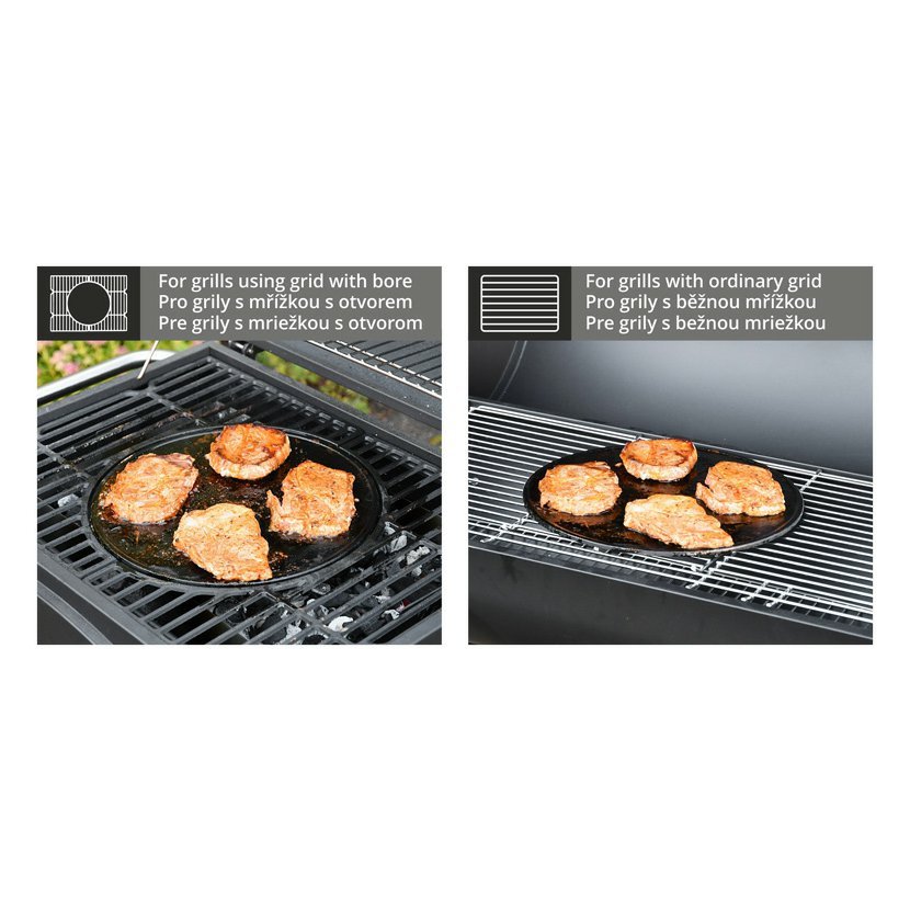 Grilovací plát z litiny průměru 31 cm pro grilování převážné masitých pokrmů.