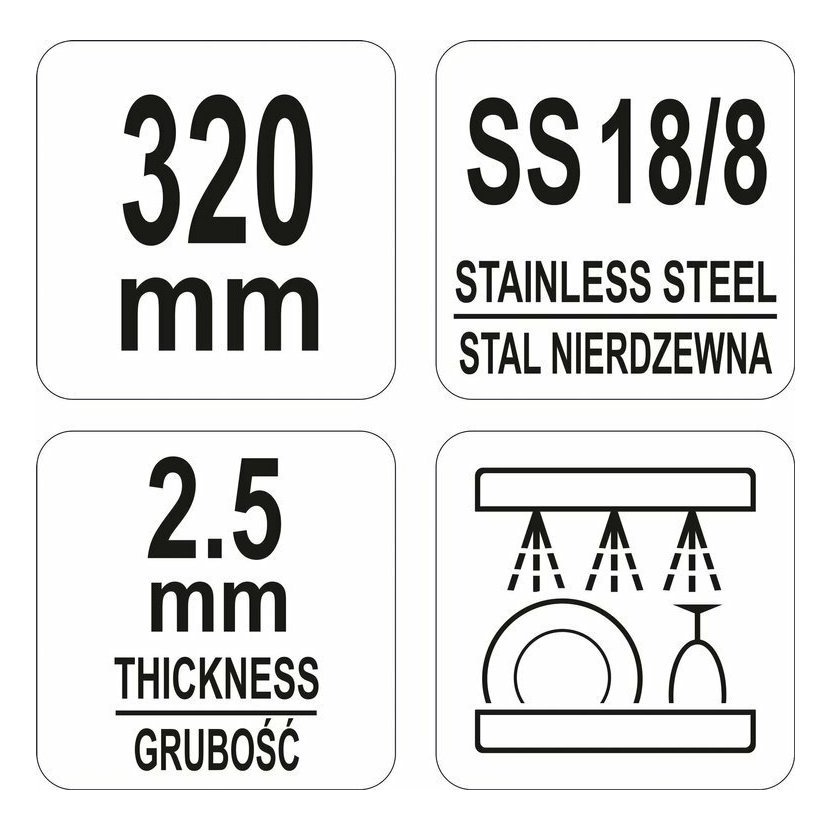Chromovaný povrch dává noži YATO elegantní vzhled a zároveň je jednoduše udržuje v čistotě. Kromě toho je možné ho mýt v myčkách nádobí.