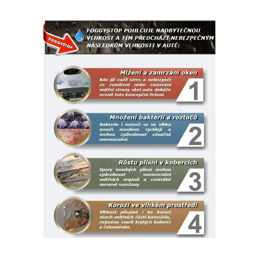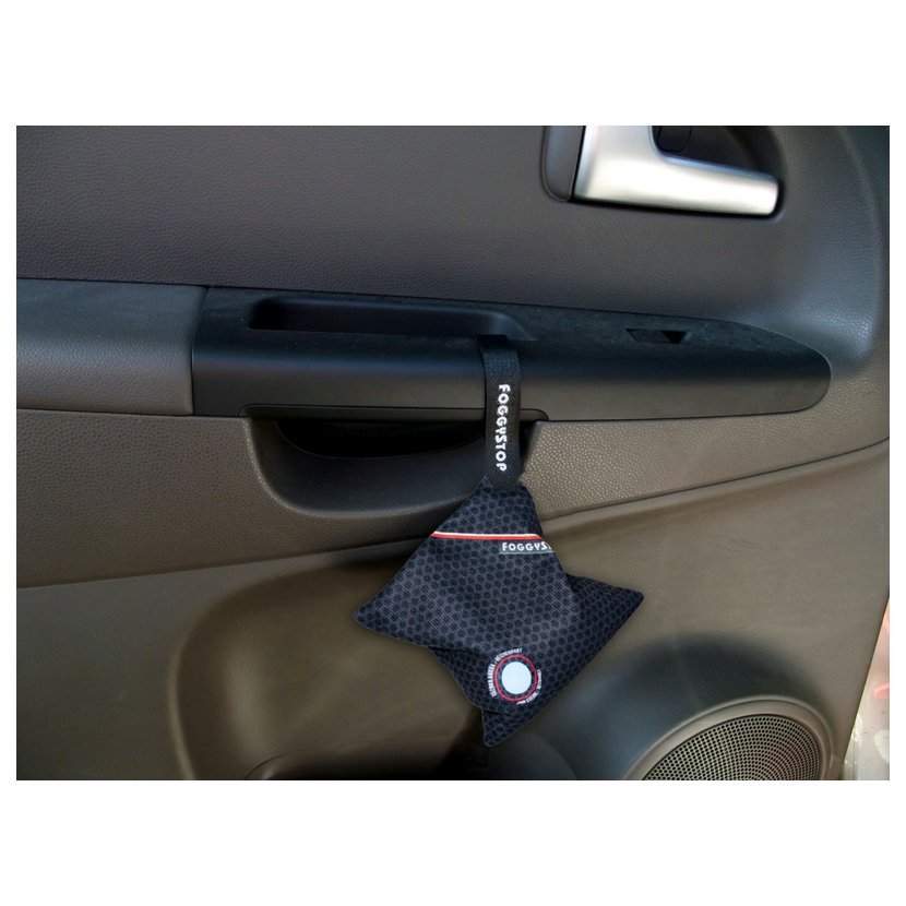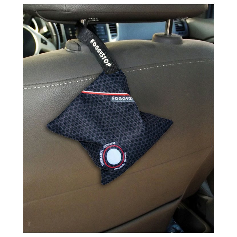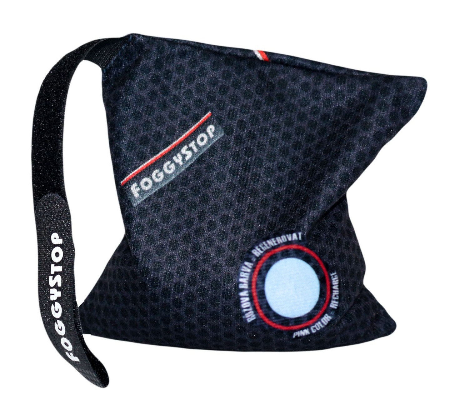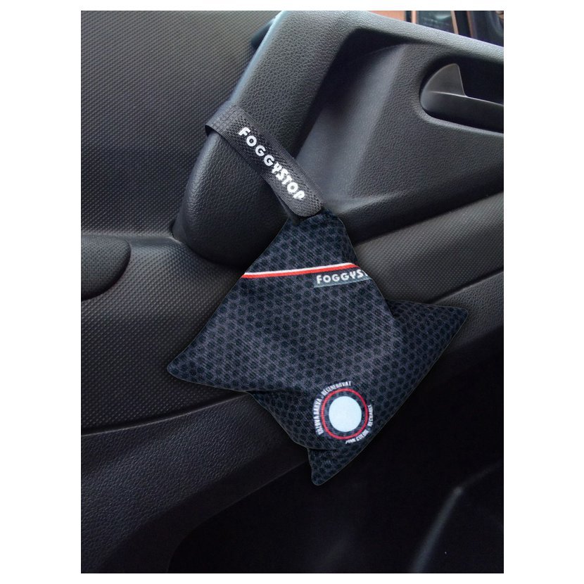 FoggyStop je zařízení, které zabraňuje mlžení a zamrzání skel auta úpravou vlhkosti vzduchu pod rosný bod. Součástí je také kolorimetrický vlhkoměr, který mění barvy v závislosti na vlhkosti vzduchu v automobilu. Úpravu vlhkosti vzduchu provádí pomocí speciální látky s povrchem 90m2/g, takže celkový povrch je více než 1 milión m2. Pomocí tohoto povrchu a proudění mezi tvarovaným obsahem a krystaly dochází k adsorbci vlhkosti a také pachů v automobilu. Absorbovaná vlhkost zůstává uvnitř a neodpařuje se. Obsah lze jednoduše regenerovat (zbavit vlhkosti) v mikrovlnné troubě a znovu použít.