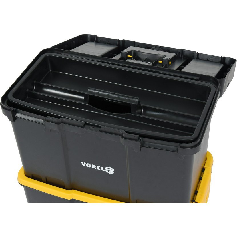 Dvoudílný mobilní vozík pro uložení nářadí a příslušenství.