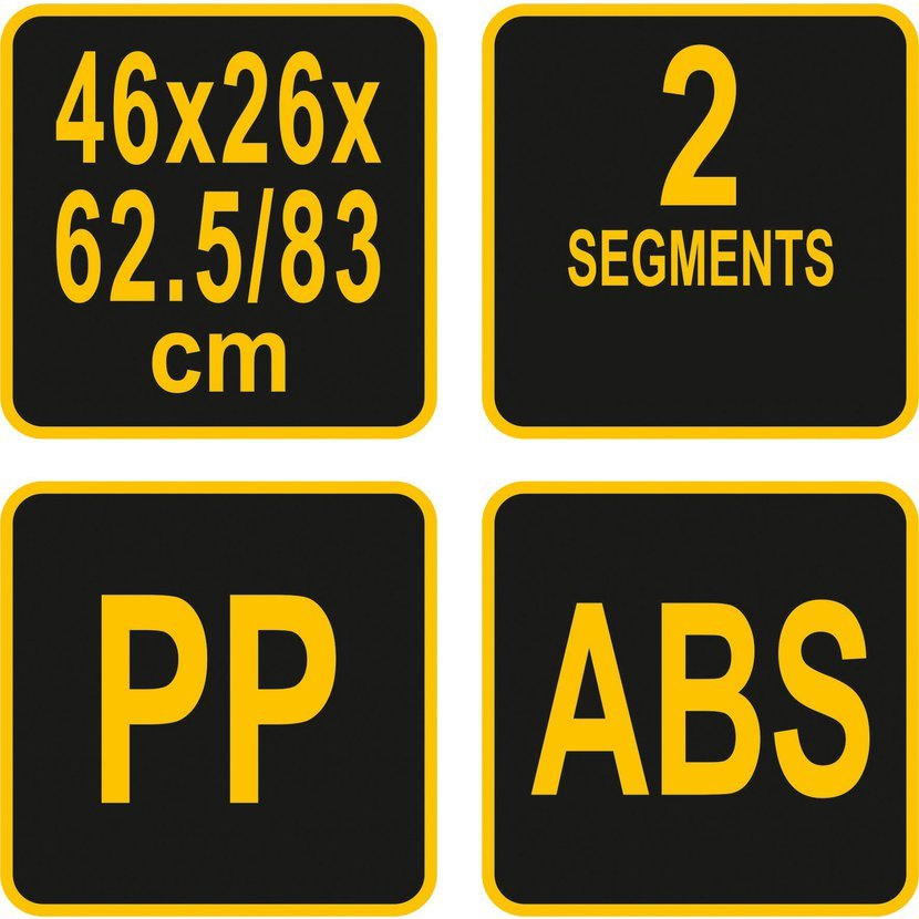 Vyrobeno z plastu s rozměry 46 x 26 x 62,5 (83) cm odolného proti mechanickému poškození.