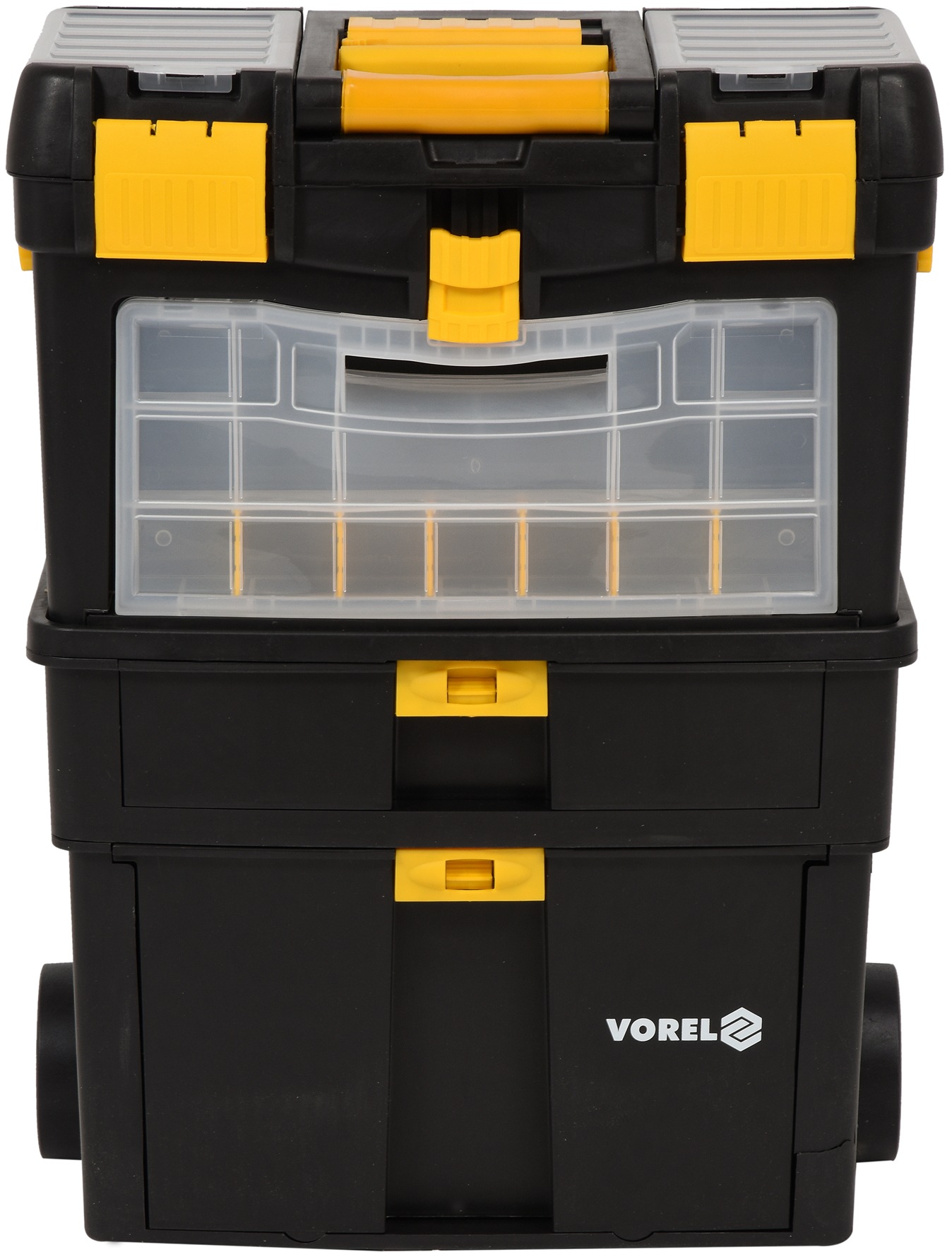 Třídílný mobilní vozík pro uložení nářadí a příslušenství.
