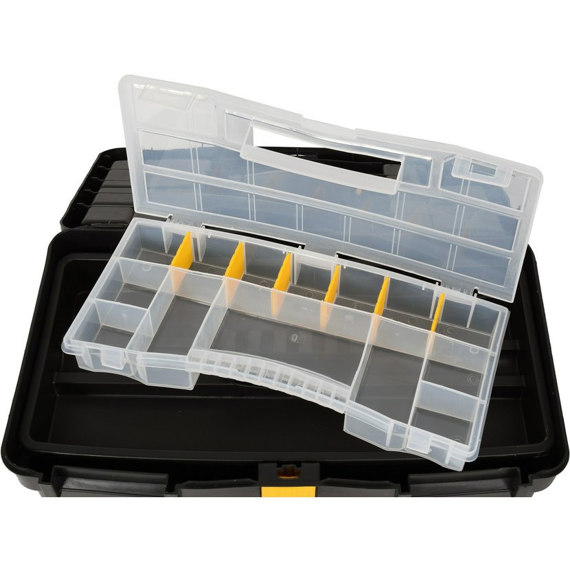 Vrchní organizér s přihrádkami je možné odepnout, tím je umožněno volně jej přenášet společně s nejnutnějším nářadím.