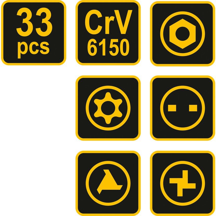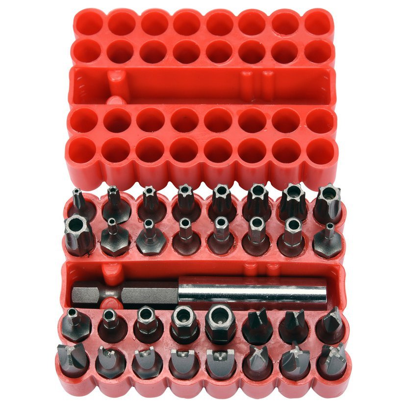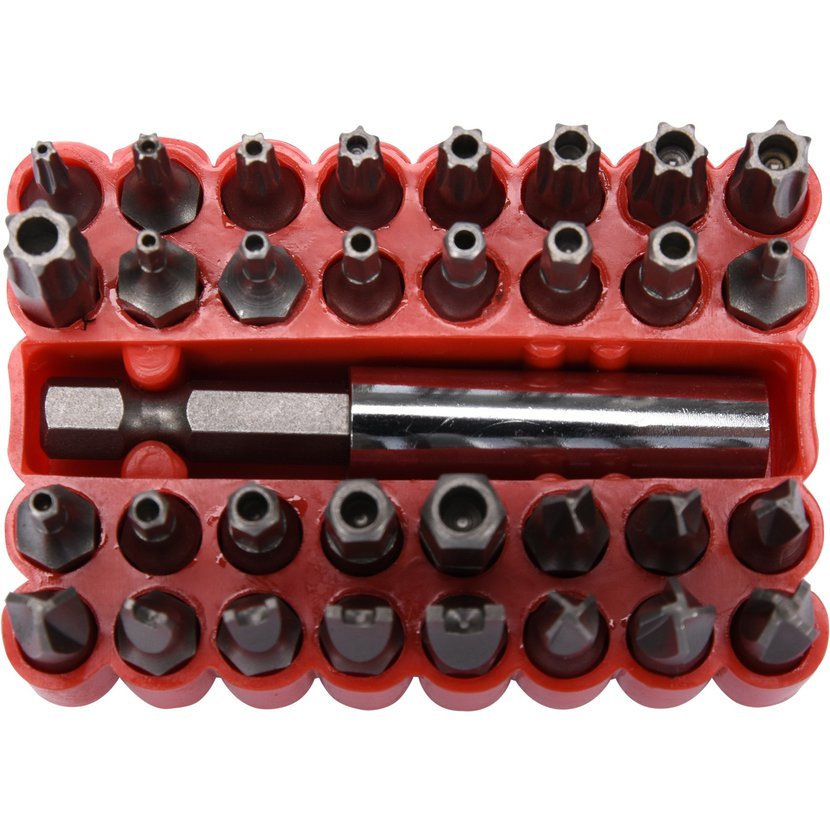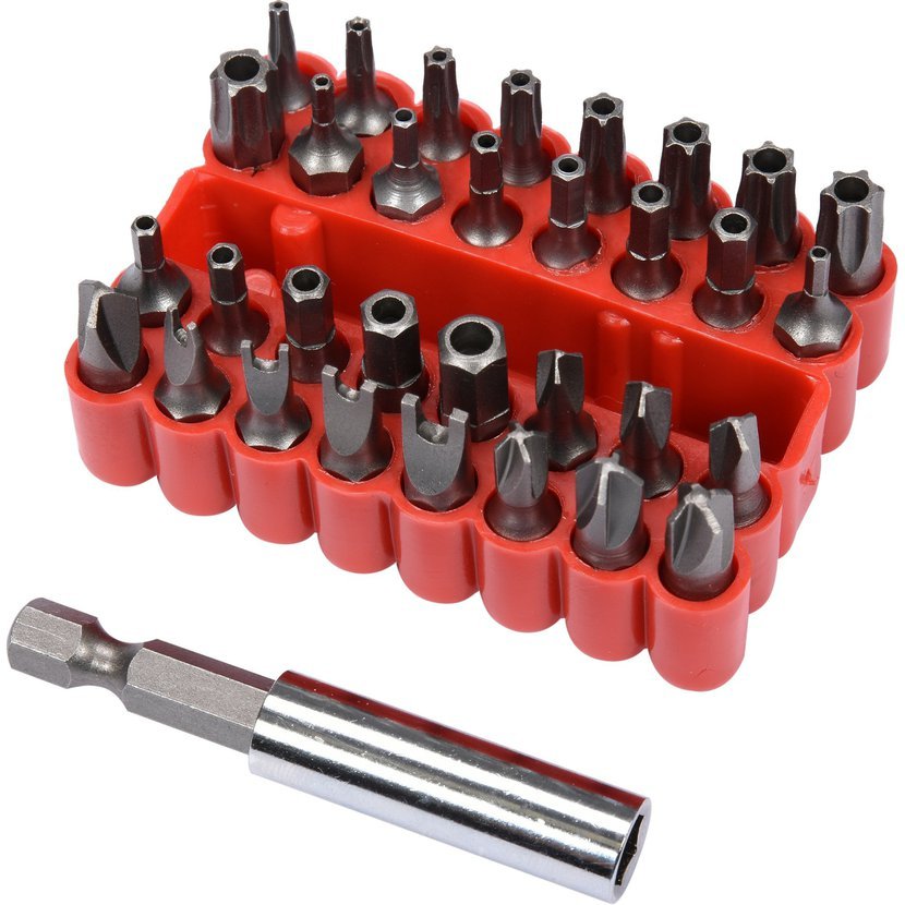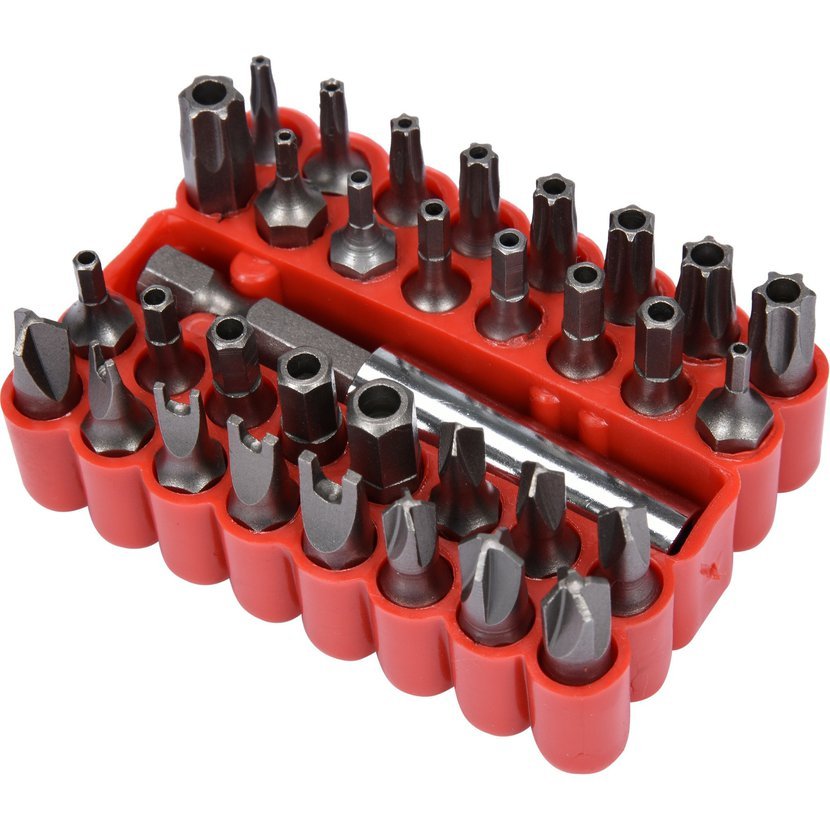 Sada bezpečnostních bitů. Jsou vyrobeny z chrom-vanadiové oceli CrV. Vše je uloženo v praktické, plastikové krabičce, takže vše máte ihned při ruce.