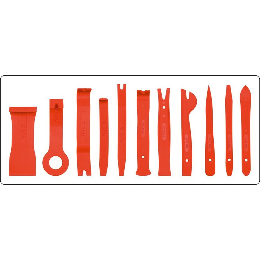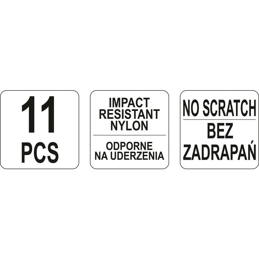 Sada obsahuje 11 komponentů pro rychlé a precizní odstranění čalounění z jakéhokoli interiéru vozidel.