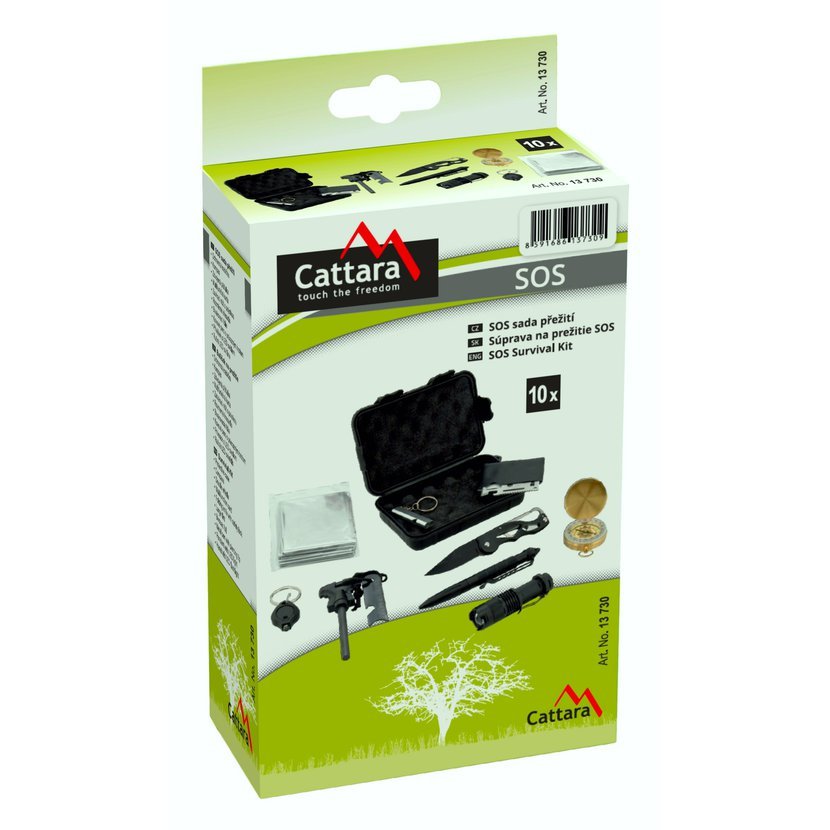 Krabička SOS sady má nízkou hmotnost 445 g a vnější rozměry 17x11x4,5 cm. Vnitřní prostor je opatřen pěnovou výplňí pro ochranu komponentů. Svými rozměry je sada vhodná pro nošení v menších kapsách, například u batohů Cattara ARMY. Lze ji uschovat i v sumkách.