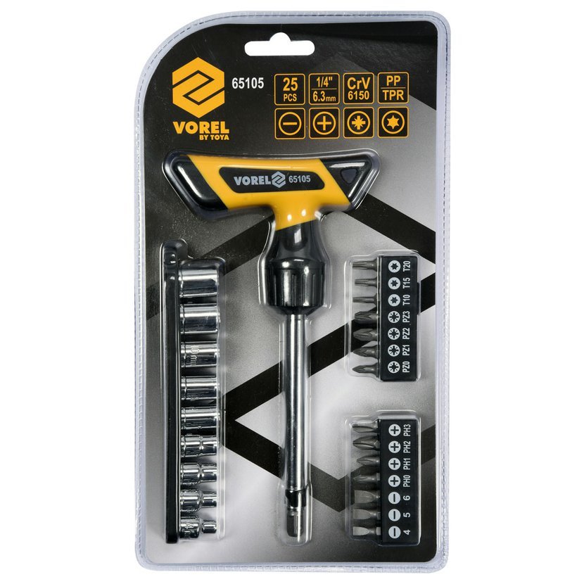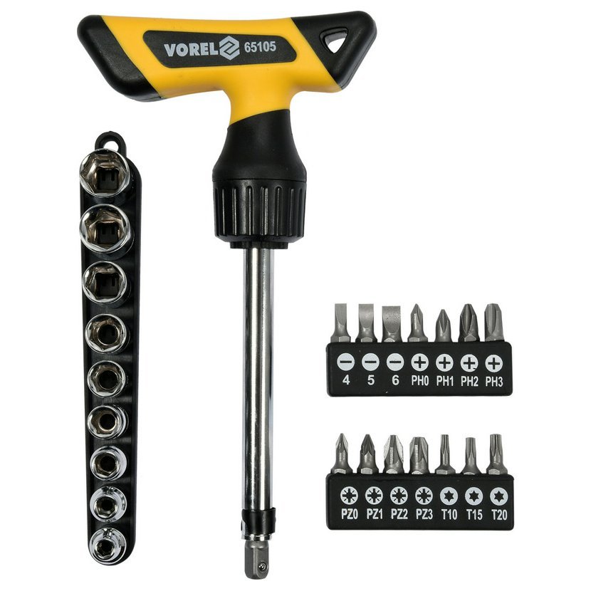 Šroubovák ERGO ráčnový s nástavci sada 25 ks Vorel TO-65105