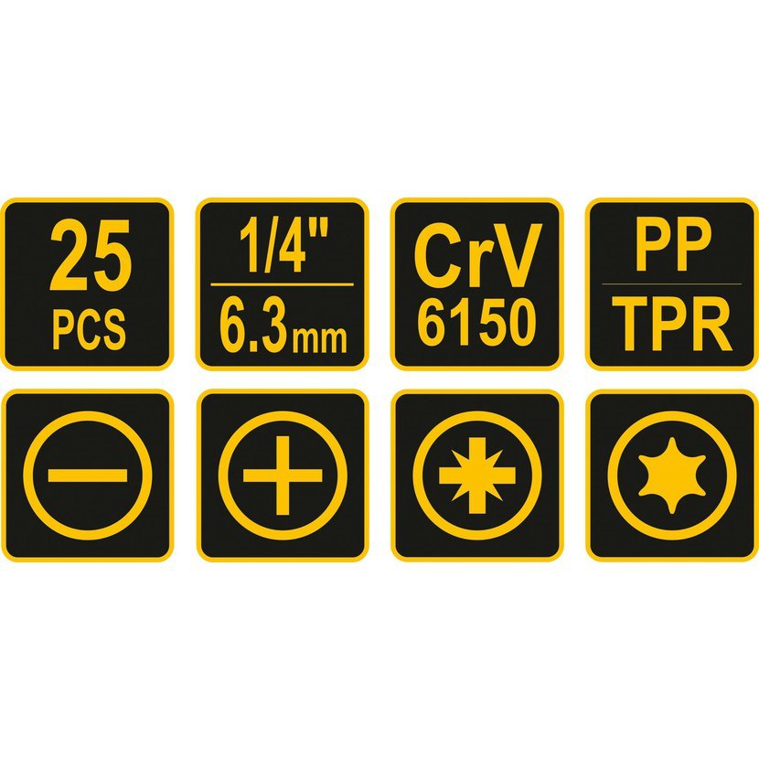 • 4x bit šroubovací PZ: PZ0; PZ1; PZ2; PZ3 (25 mm)