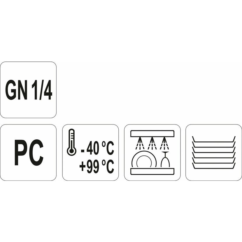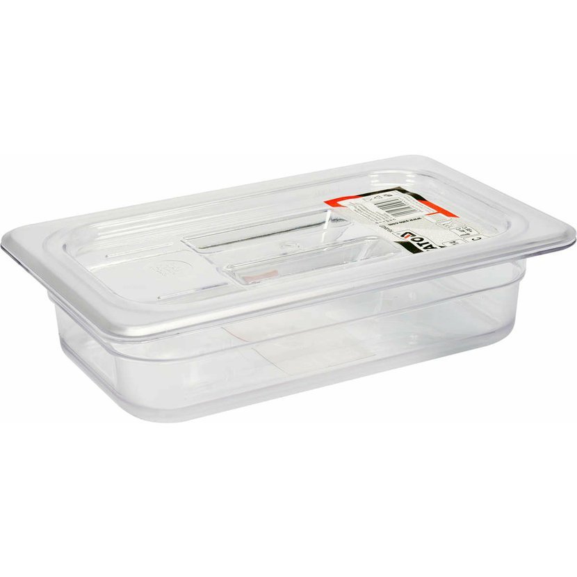 Víko pro nádobu GN 1/4 je vyrobeno z polykarbonátu.